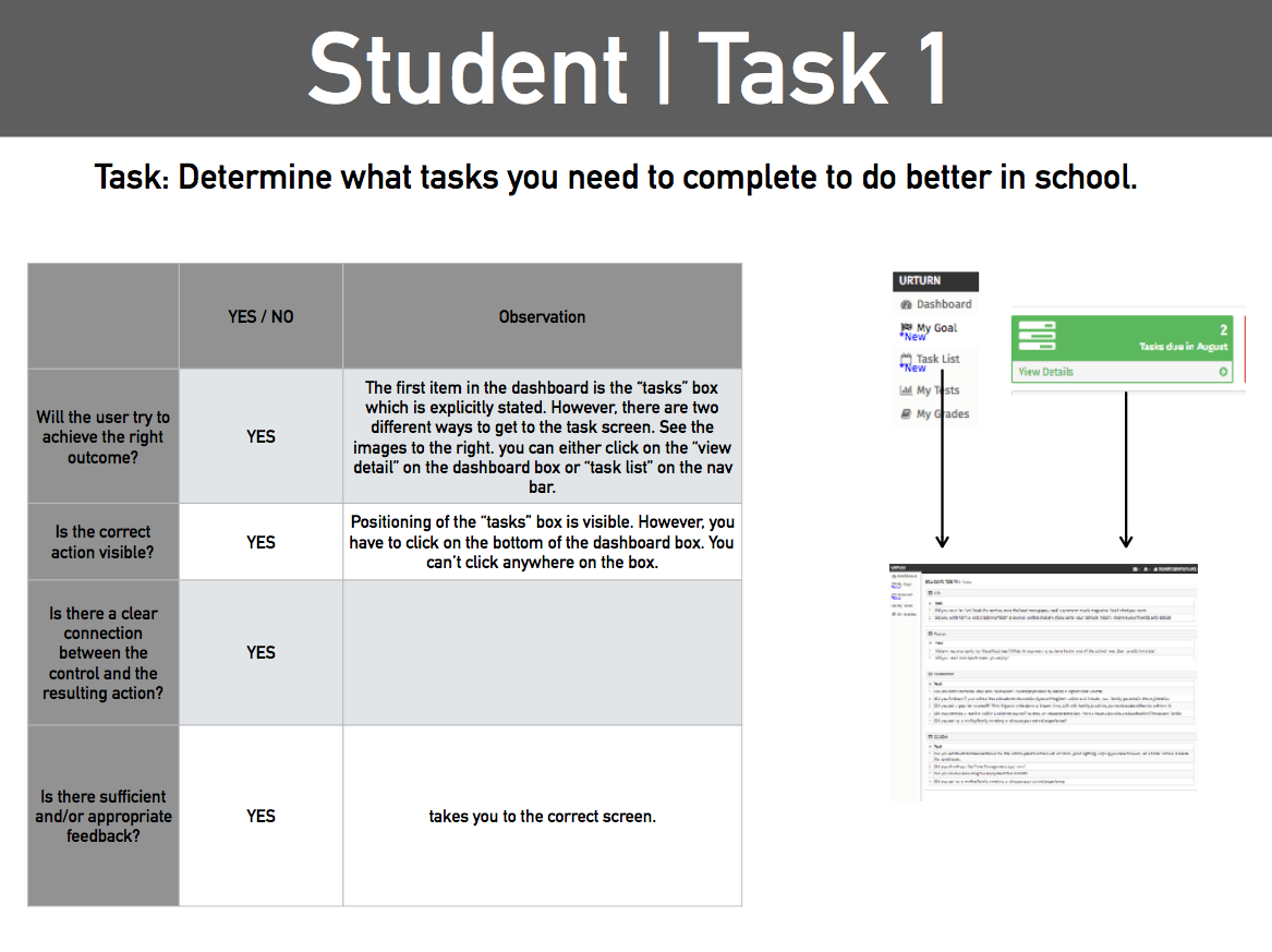 It’s difficult for students to prioritize their big picture goals (like going to college) because they are often bogged down by day to day tasks and assignments. The current state of the UR Turn application attempts to guide students to set and work towards their long term goals. However, students currently have little incentive to log in to view their goal statements. Furthermore, the students’ goals are presented under low visibility and is often hidden from view.